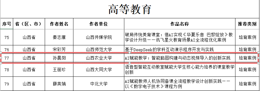 近日,教育部教育技术与资源发展中心发布《关于公布2025年教师人工智能应用案例征集活动结果的通知》,我校软件学院教师孙晨阳案例《AI赋能教学:智能脑图构建与动态视频导入的创新实践》成功入选。