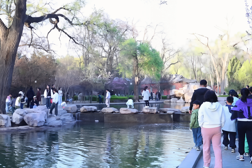 如此美景,自然引得游人如织,八方来客纷至沓来,感受这独属于农大的春日浪漫。校园的小径上、花树下,处处是熙熙攘攘的人群:有扶老携幼的一家人,有三五成群的好友。他们或结伴而行,悠然踏过思想湖畔的石板路、勤耕园里的健步道,欣赏湖中桥、廊、花、草、石的倒影和路边林间的花丛美景;或驻足花海,摆出各种姿势,用镜头记录瞬间的美好;或静坐长椅,卸下疲惫,静赏繁花与游人,沉醉于悠然美好的春日校园之中。