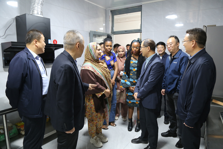 廖允成前往留学生新生宿舍,与在校留学生亲切互动,热情欢迎他们来中国、来山西农业大学学习生活,细致询问他们的国籍、所学专业、导师、学习计划及在校生活感受,鼓励大家在学习现代农业科技知识的同时,多走进山西的历史文化景点,感受中华优秀传统文化与三晋文化魅力,成为中外文化交流的友好使者,并预祝他们圆满完成学业。期间,他实地查看了留学生宿舍居住环境与厨房配套设施,要求研究生院、规划合作部、后勤保卫部协同做好留学生培养管理与生活服务,精准对接留学生文化差异与实际需求,为他们营造安全、舒适的学习生活环境。