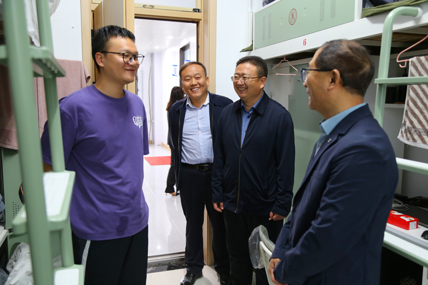 走访过程中,廖允成与留校学生面对面亲切交流。“家是哪里的?”“假期打算怎么安排?”“学习和生活上有什么困难?”了解同学们的假期计划,关心他们的实际需求,鼓励大家合理规划时间,过一个充实有意义的假期,同时叮嘱同学们注意安全,有困难及时向学校反映,学校会全力为大家提供支持。