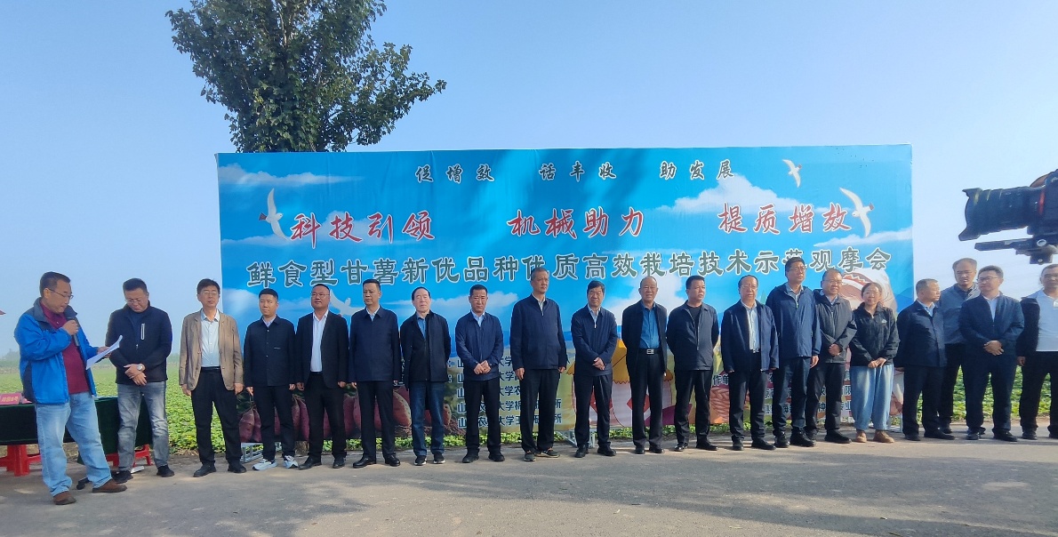 会议以“科技引领、机械助力,提质增效”为主题,集中展示了我校在甘薯领域取得的阶段性科研成果,由我校李江辉、贺立恒、贾峥嵘等科研人员组成的甘薯团队持续聚焦甘薯“特”“优”高质量发展,引导生产企业与种植主体“树品牌、创精品”,以“提质增效”为目标导向,引领我省甘薯生产逐步迈向标准化,优质化,助力我省甘薯生产可持续发展开拓新局面。搭建了“科研单位—管理部门—种植主体”的沟通桥梁。
