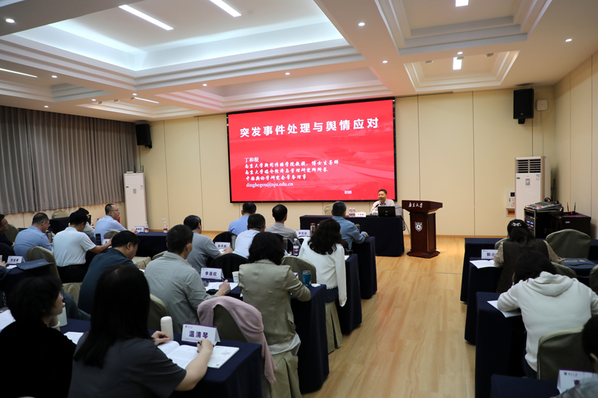 10月14日至16日,学校在南京大学举办2025年宣传思想和意识形态队伍专题培训班。校党委副书记李卫祥作开班动员讲话,校党委常委、宣传统战部部长李文来主持结业仪式。全校各部门、各单位负责人、宣传委员,相关部门宣传干部共计60余人参加培训。