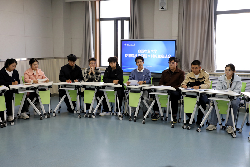 10月29日下午,学校在太谷校区勤学楼智慧教室召开校领导接待日暨本科新生座谈会。校党委书记廖允成、党委副书记李卫祥与本科新生代表面对面交流。李卫祥主持座谈会,党政办公室、宣传统战部、学生工作部、教务部、后勤保卫部、校团委等部门相关负责人,辅导员代表参加座谈。