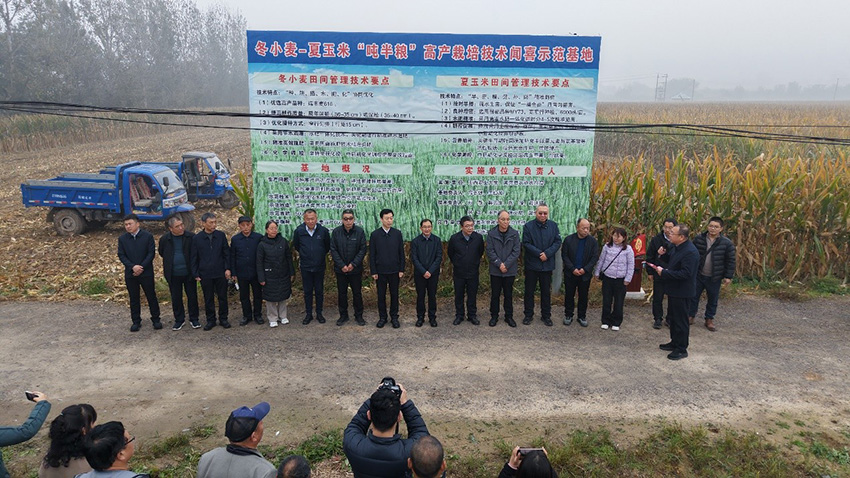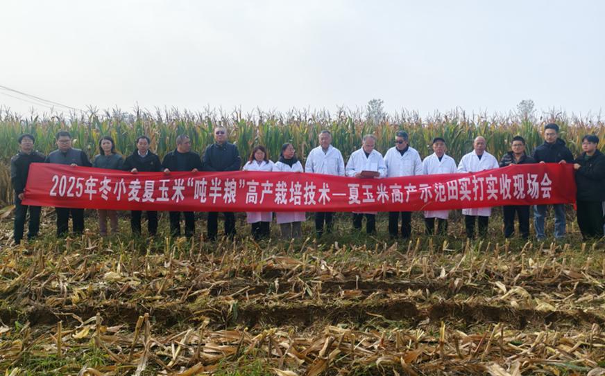 观摩会的测产环节由西北农林科技大学、山西省种业发展中心、山西省农业技术推广服务中心、运城市农业技术推广与园艺产业发展工作站、闻喜县农业农村局、我校农学院等单位组成测产专家组,对该基地进行了现场测产,实收夏玉米11.54亩,亩产832.24公斤,加上今年同一地块冬小麦亩产765.76公斤的产量,麦玉周年产量达到了亩产1598公斤,实现了周年吨半粮的目标,充分展示了项目的科技实力与示范效果。