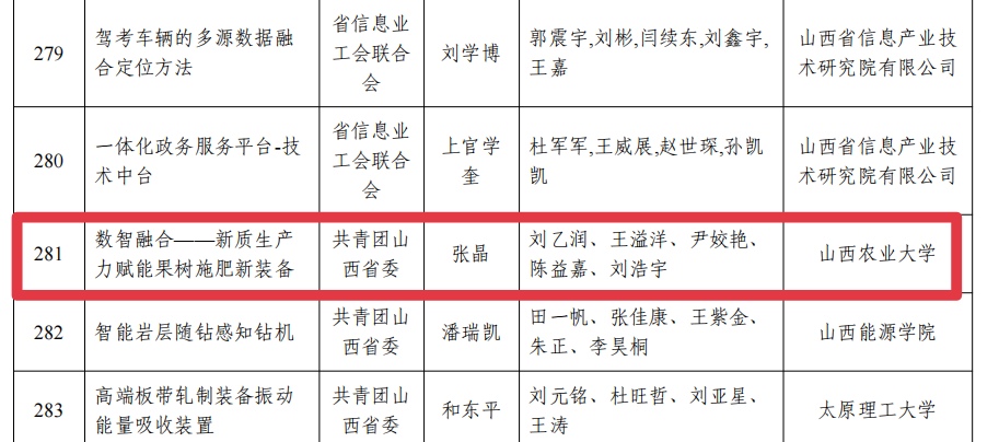 第十九届“挑战杯”山西省大学生课外学术科技作品竞赛一等奖