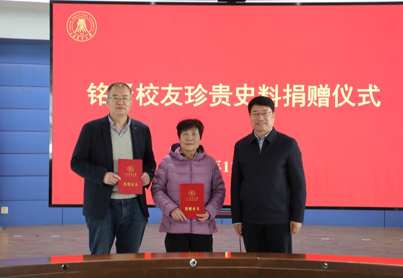 李卫祥代表学校向大家远道而来表示热烈的欢迎,向慷慨捐赠表示衷心的感谢。他简要介绍了白冰、陈汝艇两位校友读书求学、建设祖国的人生历程,指出此次捐赠的37本日记,不仅是个人成长记忆的载体,也是学校校史长河中的鲜活档案,更是一笔宝贵的精神财富。表示要妥善珍藏每一本日记本,陈列在校史馆内,让在校师生更加深入了解山西农业大学的历史与传承,让每一份记忆都能传递下去。他强调,校友是农大精神的塑造者,农大文化的传播者。母校的荣光,离不开校友们的慷慨支持;母校的建设发展,离不开校友的积极参与。学校将一直重视校友工作,关心和支持校友的成长发展,做好校友们的坚实后盾。