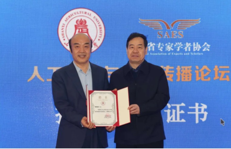 为山西农业大学智能传播研究院院长郝建新颁发聘书