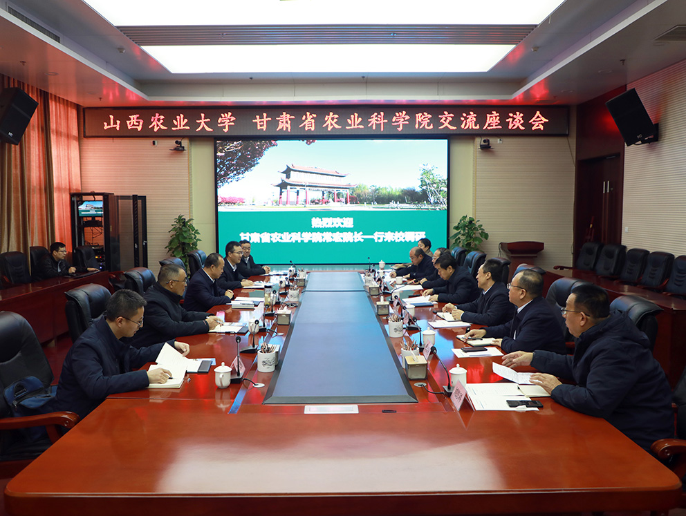 甘肃农业科学院相关部门负责人,我校组织人事部、规划合作部、科研管理部、社会服务部、资源环境学院、山西有机旱作农业研究院等相关单位负责人参加座谈。(宣传统战部 程静/摄)