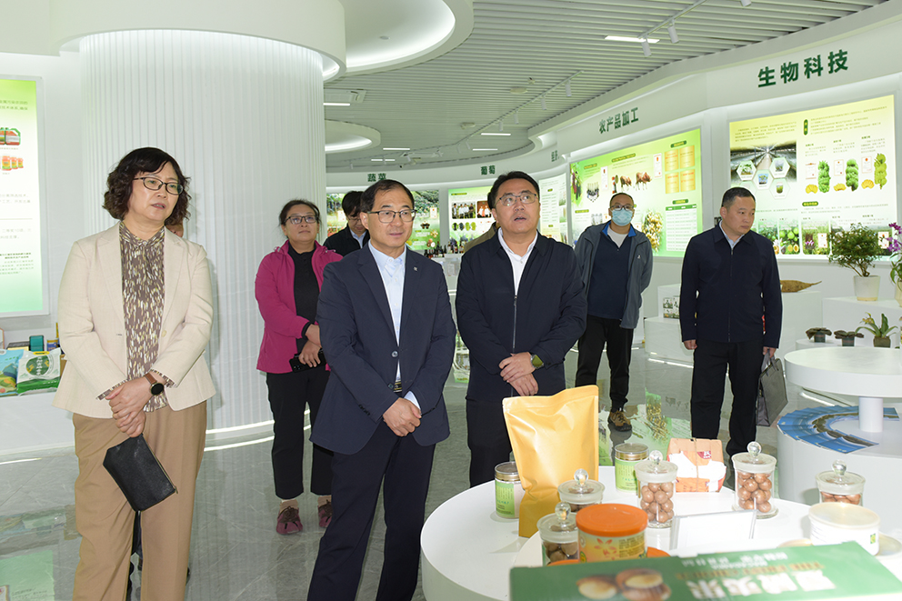 在广西农科院,廖允成一行在党委书记、院长孙健的陪同下,参观了科技成果馆、院史馆、昆虫馆和新品种新技术展示区。廖允成对广西农科院九十年坚守“科技兴农、富农强桂”初心,从抗战时期的“战时农都精神”到新时代“厚德博精,富农强桂”的农科精神,以及在热带、亚热带特色农业科技创新上取得成绩表示敬意,并介绍了我校在人才培养、科技创新、示范推广、合署改革等方面的情况。他希望双方加强交流合作,充分发挥各自优势,深化在种质资源创新、特色种植技术研发、农产品加工等领域的合作,共同为区域农业产业发展贡献力量。