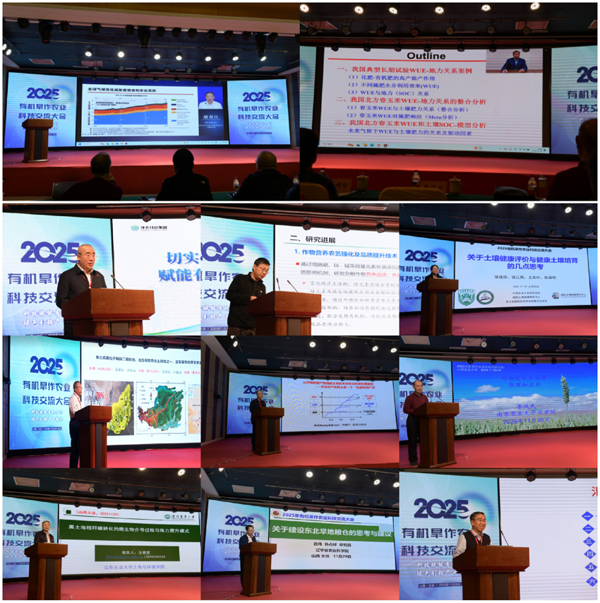 随后,9位业界知名专家与企业代表结合自身工作实际,分享了各自在有机旱作农业相关领域的创新路径和成功经验。神农科技集团党委书记、董事长李晓军讲述了神农集团在有机旱作农业科技创新、示范推广、品牌培育方面的工作,充分彰显了国有企业的使命担当;中国农业大学陈阜教授系统总结分享了团队在晋北农牧交错区实施的有机旱作农业技术模式创新与实践成效;中国农业大学张俊伶教授详细介绍了土壤健康评价及挑战,提出了植物—土壤反馈(PSF)研究新范式,为推动农业绿色发展提供了有效策略;甘肃省农业科学院樊廷录研究员详细分析了黄土高原旱地玉米单产“倍增”的潜力与调控机制,为旱地玉米产量提升提供了创新思路和可借鉴模式;西北农林科技大学薛吉全教授精彩分享了玉米产量增进的技术途径、种质资源创新与选育、智能化育种技术体系平台构建等内容,为推动玉米育种创新提供了指引;南京农业大学李凤民教授详细阐述了作物进化生态学理论研究、方向及对育种工作的支撑作用,分享了选育旱地冬小麦新品种“兰大211”的实践成效;沈阳农业大学汪景宽教授详细介绍了玉米残体对土壤地力提升的机制、耕地质量保育—提升—改良的6套模式及对东北黑土地保护做出的重要贡献;辽宁省农业科学院白伟研究员围绕东北地区旱地粮食产能提升面临的问题及粮食产能提升潜力,建设东北旱地粮仓的基本原则、思路和政策建议进行了深入细致的成果分享;内蒙古自治区农牧业科学院赵沛义研究员详细介绍了北方农牧交错区旱作农田蓄水调肥抗旱丰产增效技术内容及应用成效,为解决北方农牧交错区水资源短缺和作物低产的瓶颈问题提供了科技支撑。