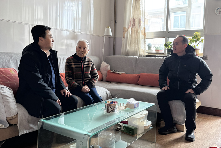 走访期间,校领导与老同志亲切交谈,细致询问其身体与生活状况,传递学校的关怀与慰问,介绍学校过去一年的发展成果,认真听取老同志对学校改革发展的意见建议,感谢他们为学校建设发展作出的贡献,期盼老同志继续关心支持学校发展,祝愿大家保重身体、安享晚年。在假期值班值守一线,校领导与在岗工作人员深入交流,送上新春祝福和慰问品,感谢大家一年来的辛勤付出,详细了解工作运行、值班安排及实际困难等情况,叮嘱大家抓实抓细安全保障和服务管理工作,确保学校度过一个安全祥和的春节,并提前向全体值守人员致以新春的美好祝愿。(宣传统战部 程静 范晓峰 任倩倩 赵琦琦 乔奕宁 郝文安/摄)