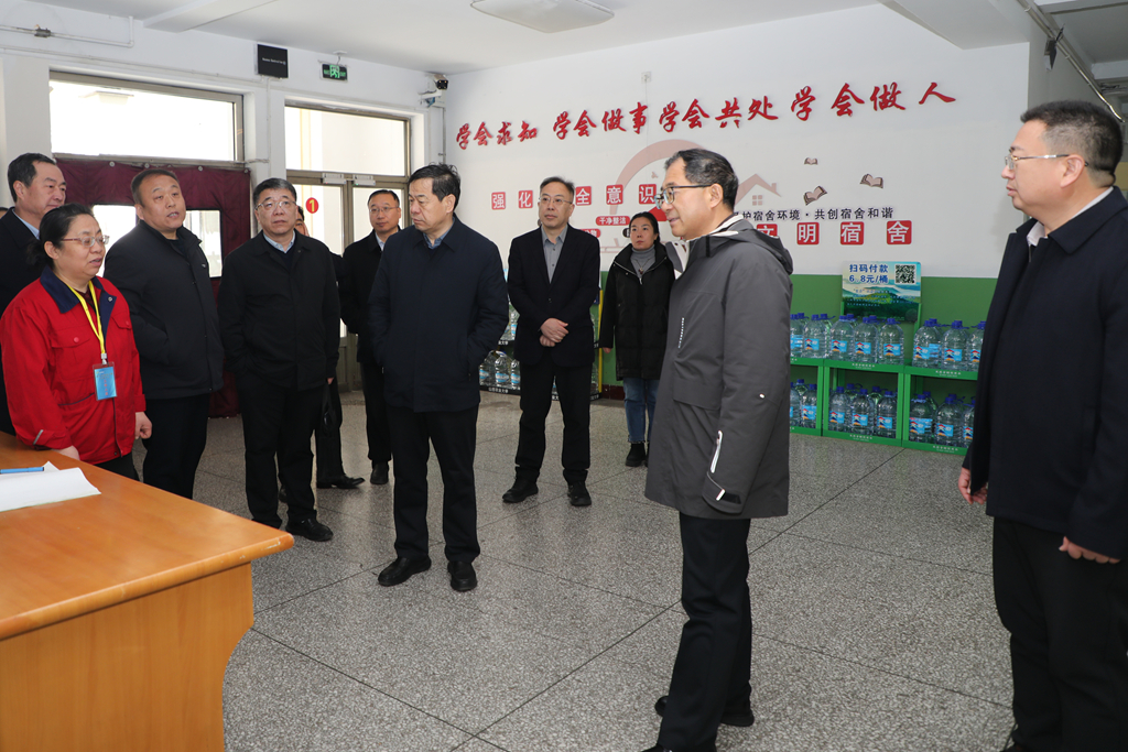 校党政办、学生工作部、教务部、研究生院、后勤保卫部等相关单位负责人陪同检查。(宣传统战部 程旭东/摄)