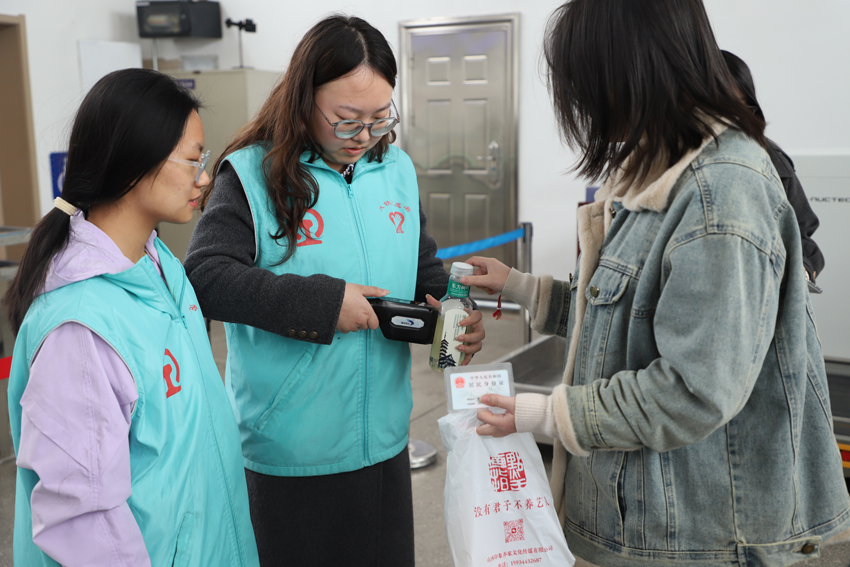 农学院、植物保护学院的志愿者们走出校园,来到太谷火车站开展便民服务。他们主动为过往旅客搬运行李、协助工作人员清理和布置候车大厅、完成安检流程,耐心引导旅客购票、候车,细致解答出行咨询,以饱满的热情、贴心的服务诠释了“奉献、友爱、互助、进步”的志愿精神,彰显了青年学子的责任与担当。
