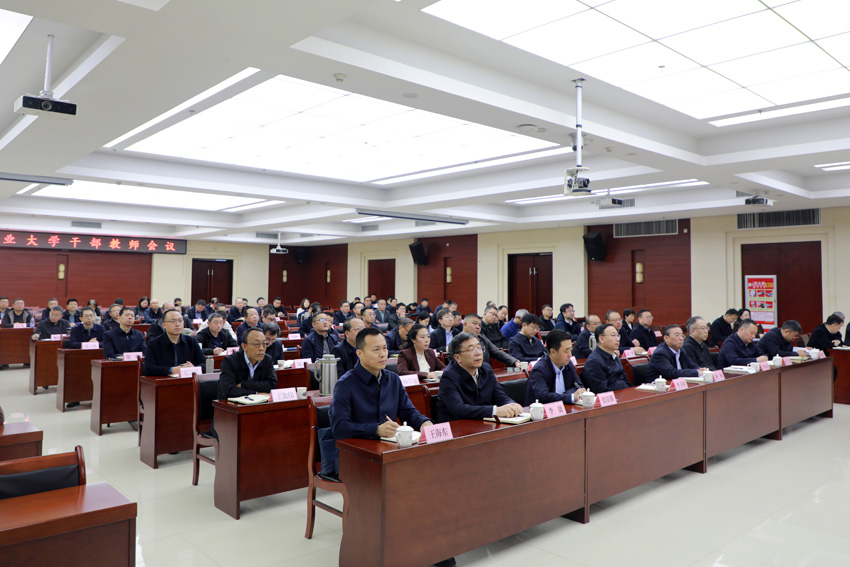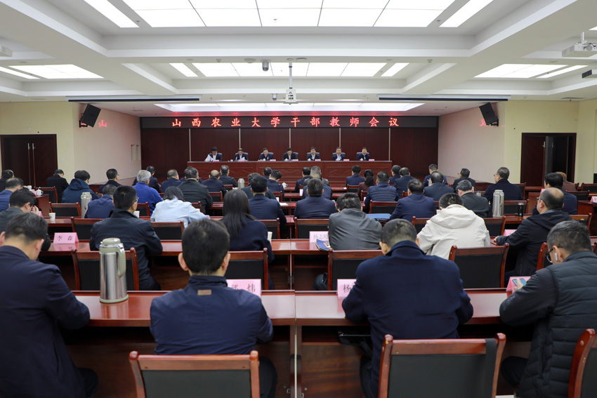 廖允成在讲话中表示,这次省委、省政府对校领导班子成员进行调整补充,是从加强领导班子建设、深化校院合署改革、推动校院事业高质量发展大局出发,通盘考虑、慎重研究作出的决定,对于省委、省政府的决定,我们坚决拥护、完全服从。他代表新的领导班子表态,一是加强党的政治建设,始终把准正确政治方向。坚持和完善党委领导下的校长负责制,充分发挥校党委领导核心作用,深化新时代党建示范创建和质量创优工作,高质量筹备并开好第七次校党代会,推动党的建设与中心工作双向赋能、同频共振。二是实施好“十五五”规划,推动校院事业高质量发展。聚焦服务加快建设教育强省、山西特优农业提质增效和乡村全面振兴等战略需求,深化校院合署改革,科学编制和实施好“十五五”发展规划,系统推进教育科技人才一体改革,加强人才队伍建设,推动优势学科实现一流突破,产出更多原始创新成果服务农业发展。三是坚守人民至上理念,更多发展成果惠及师生。牢固树立和践行正确政绩观,深入践行以师生为中心的发展思想,深入推进“我为群众办实事”活动,稳步有序实施基础设施项目和民生改善实事,全方位提升师生舒适度、幸福感,夯实校院事业行稳致远的民心根基。四是严守党的纪律规矩,保持风清气正良好生态。牢固树立大局意识、全局观念,带头维护领导班子团结,充分发挥领导班子“头雁效应”,认真落实好干部用人标准,打造一支忠诚干净担当的高素质干部队伍,持之以恒落实中央八项规定及其实施细则精神,驰而不息纠治“四风”,持续巩固风清气正的良好政治生态和育人环境。(宣传统战部 程静/摄)