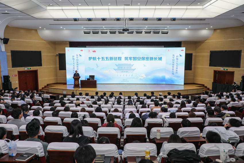 刘迪山以《依法推进保密工作高质量发展》为题,从充分认识修订《中华人民共和国保守国家秘密法》的重大意义、《中华人民共和国保守国家秘密法》修订的主要历程、新修订《中华人民共和国保守国家秘密法》的主要内容、全面学习贯彻实施新修订《中华人民共和国保守国家秘密法》四个方面为师生作专题报告。