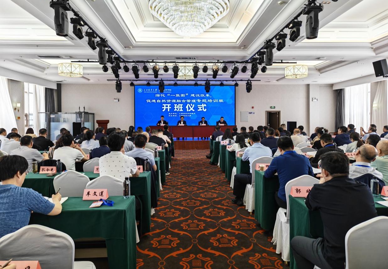 4月26日下午,由山西省自然资源厅主办、我校承办的“深化‘一张图’建设改革,促进自然资源融合管理专题培训班”开班仪式在我校举行。省自然资源厅党组书记、厅长、省自然资源总督察姚青林出席并作开班讲话,自然资源部网信办副主任、总工程师吴洪涛出席仪式,我校党委书记廖允成出席并致欢迎辞,校党委常委、副校(院)长方亮主持开班仪式。来自17个省直厅局及全省自然资源系统的全体参训学员参加了仪式。
