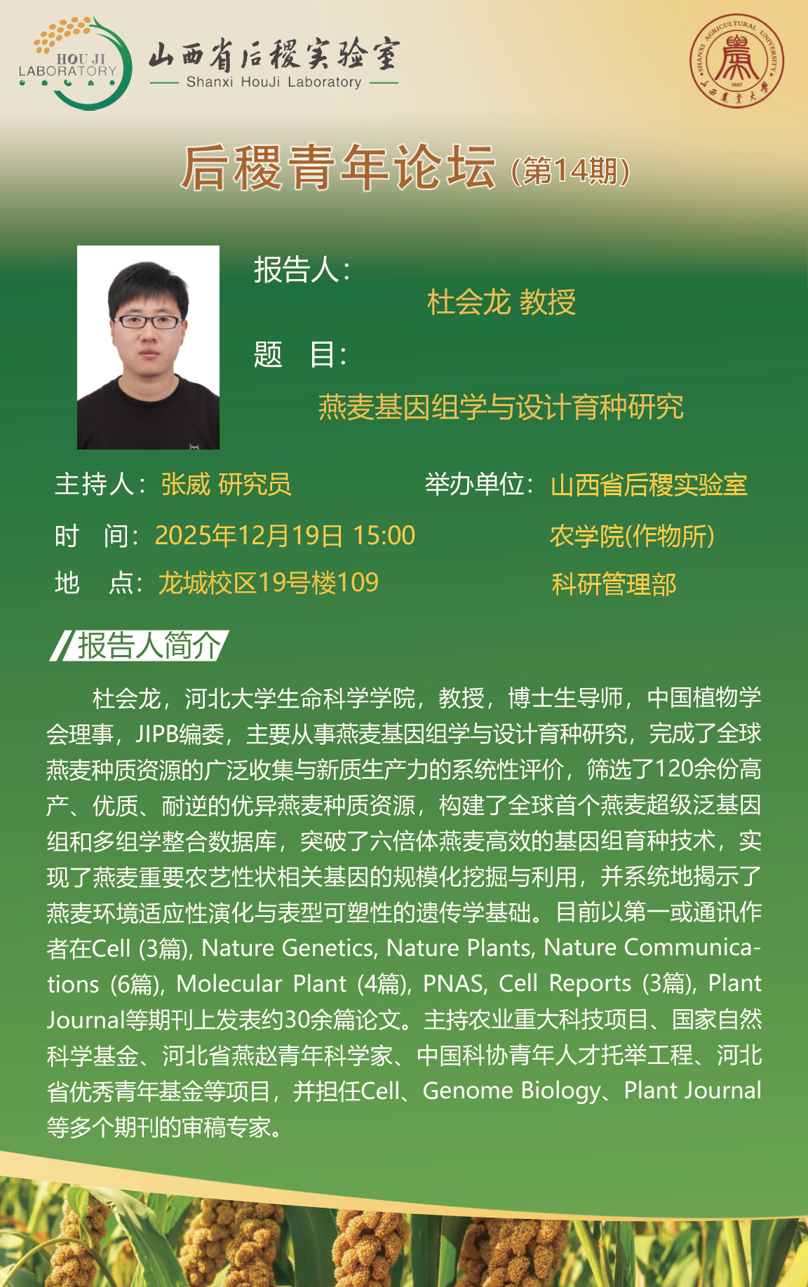 后稷青年论坛第14期学术报告通知