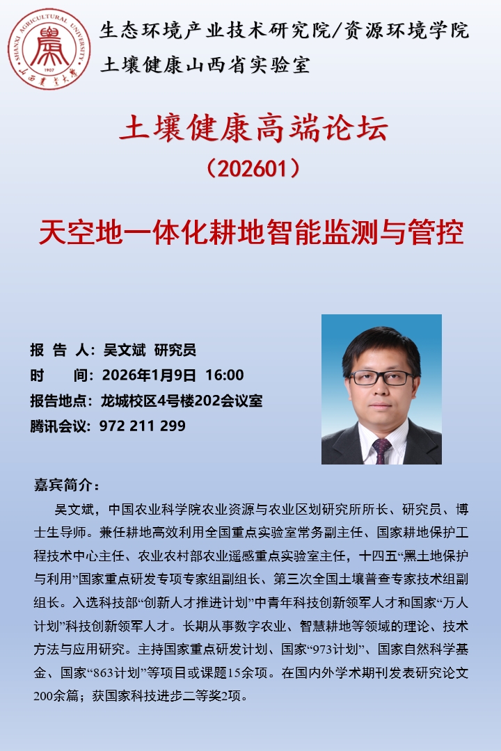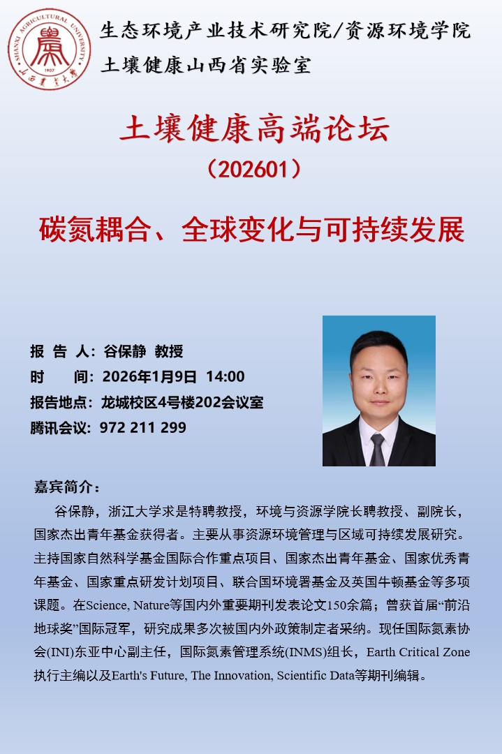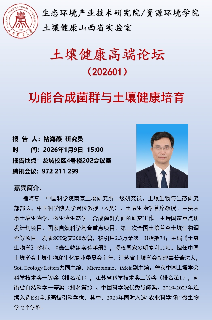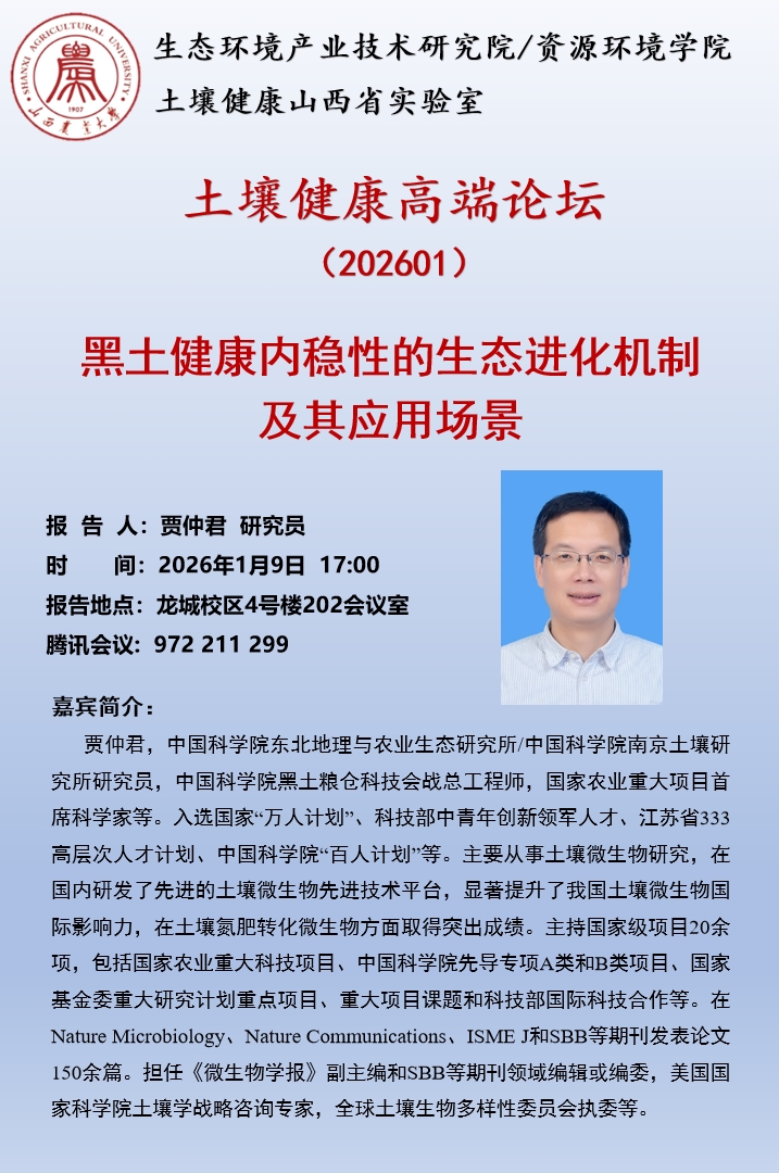 土壤健康高端论坛202601期学术报告通知