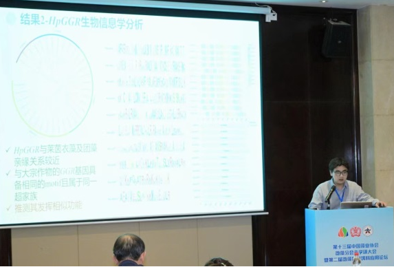 在研究生论坛上,刘纹众(导师:张春辉)作了“红球藻HpGGR基因鉴定及其提升作物缺氮抗逆性的功效研究”的报告,获得大会研究生优秀报告奖,并在大会闭幕式期间代表所有获奖者发言;付强(导师:张春辉)作了“黄腐酸提升莱茵衣藻镉耐受性及其在农业上的应用”的报告,获得大会研究生优秀报告奖;刘义珍(导师:季春丽)展示了“异源表达栅藻苹果酸酶SqME基因提高烟草光合固碳和抗逆性”墙报,与相关专家学者深入交流。