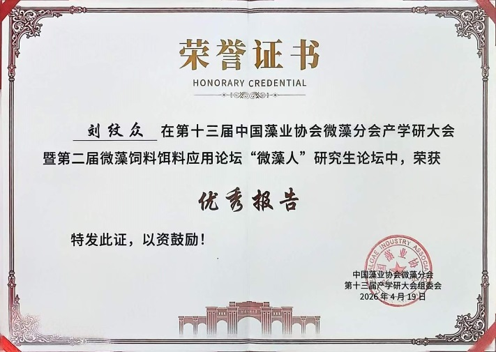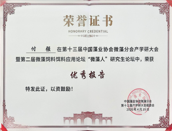 4月17日至4月20日,中国藻业协会微藻分会联合河南师范大学、郑州大学在河南新乡成功举办“第十三届中国藻业协会微藻分会产学研大会”。农学院教师李润植、张春辉参加会议,作物学科硕士研究生刘纹众、付强获得大会研究生优秀报告奖。