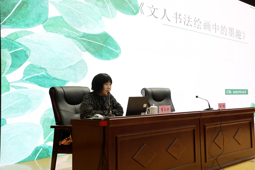 12月4日,由城乡建设学院承办的美育讲堂在书林堂举办,山西省文联主席、山西省女作家协会主席、山西大学文学院教授、著名作家葛水平应邀担任主讲嘉宾,作了题为《文人书法绘画中的墨趣》的专题讲座。校党委副书记李卫祥与学院党政领导、师生代表一同聆听,感受传统文化之美。