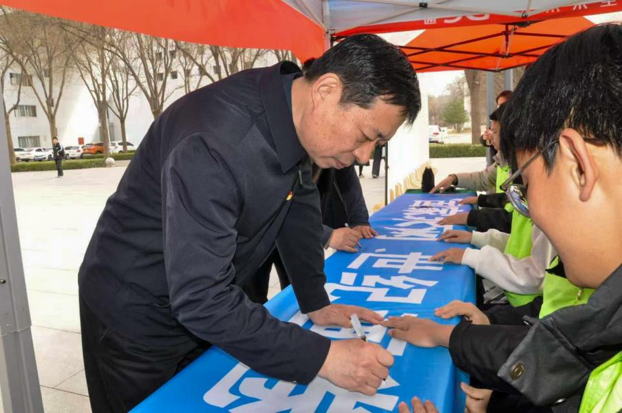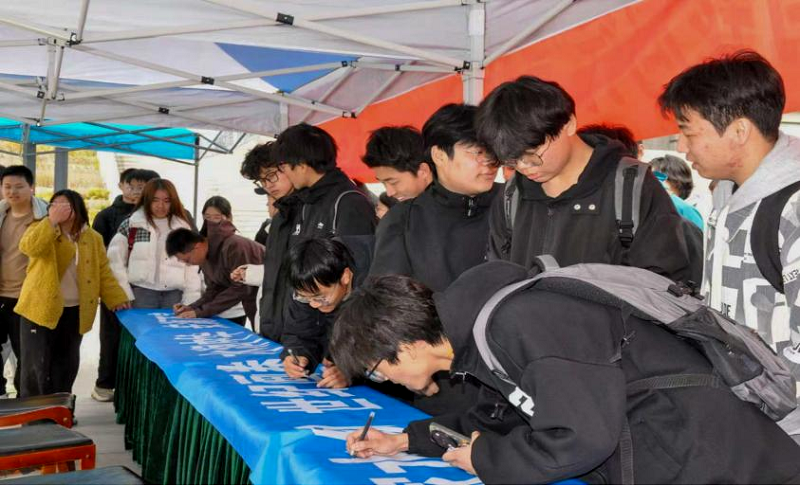启动仪式后,在勤学楼广场举办了“节水与我同行”千人签名活动,学院党委书记张鹏率先在印有“国家水网 世纪画卷 水润中华 安澜万家”的条幅上郑重署名,承诺践行节水责任。广大师生积极参与,党员志愿者现场讲解节水知识,深化“人人参与、共建绿色校园”的理念。