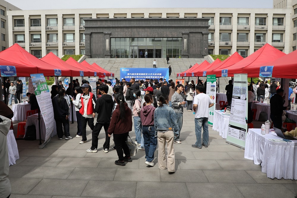 4月27日,由学生工作部主办,动物科学学院、动物医学学院、草业学院联合承办的2026届毕业生春季校园双选会(畜牧兽医草业类专场)在太谷校区勤学楼广场举行。校领导前往现场指导工作。