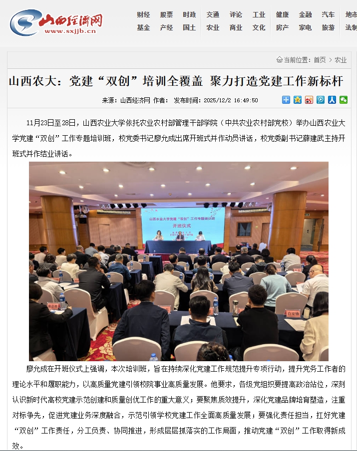 11月23日至28日,山西农业大学依托农业农村部管理干部学院(中共农业农村部党校)举办山西农业大学党建“双创”工作专题培训班,校党委书记廖允成出席开班式并作动员讲话,校党委副书记薛建武主持开班式并作结业讲话。