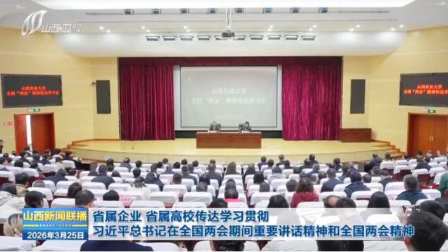 3月25日,《山西新闻联播》报道省属企业、省属高校传达学习贯彻习近平总书记在全国两会期间重要讲话精神和全国两会精神。其中,我校召开党委理论学习中心组(扩大)学习会强调,科学编制实施学校“十五五”规划,对接教育强国、教育强省部署,强化科技创新与社会服务双轮驱动,建强各类科研平台,攻坚关键核心技术,切实把学科、人才、科技优势转化为服务地方发展的实际成效,努力开创高水平研究应用型大学建设的新局面。
